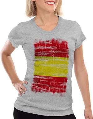 Spanien Vintage Flagge Damen T-Shirt EM WM Olympia, Farbe:Grau meliert, Größe:S