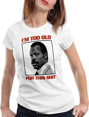 This Shit Damen T-Shirt Danny Glover Too Old, Farbe:Weiß, Größe:L