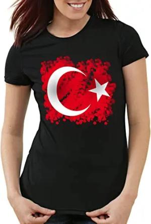 Türkei Damen T-Shirt Turkey Türkiye Flagge Mondstern, Farbe:Schwarz, Größe:XS