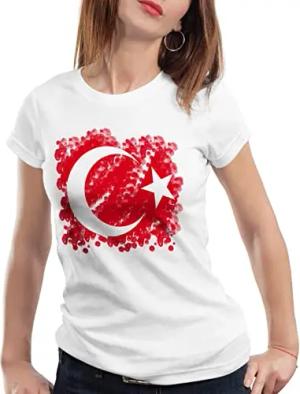 Türkei Damen T-Shirt Turkey Türkiye Flagge Mondstern, Farbe:Weiß, Größe:M