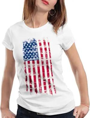 USA Vintage Flagge Damen T-Shirt, Farbe:Weiß, Größe:XS