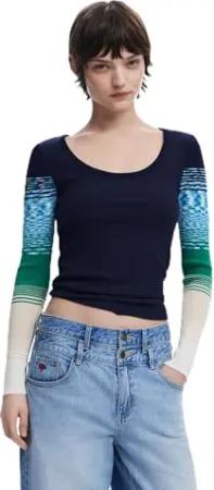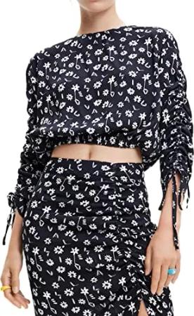 Damen Blouse langærmet T Shirt, Schwarz, S EU