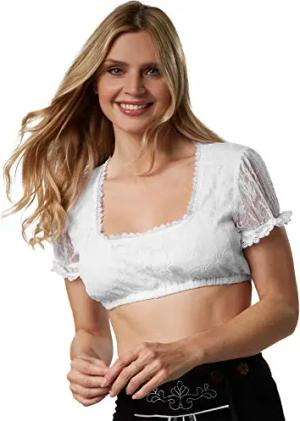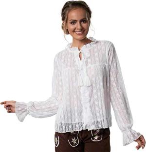 Dirndl Bluse Damen, Dirndlbluse weiß, Trachtenbluse Damen, Dirndlbluse Langarm, Spitze, Trachtenhemd, Dirndl Bluse transparent - S
