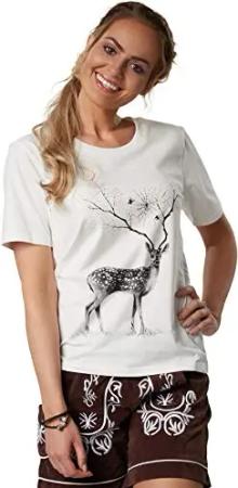 900807 Damen Trachten Shirt, T-Shirt mit stimmungsvollem REH Motiv Aufdruck - Diverse Größen - (L | Nr. 302867)