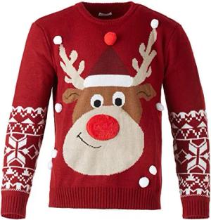 900828 Damen Weihnachtspullover Rudi Rentier, Strickpullover mit lustigem Rentier und Schneeflocken - Diverse Größen - (M | Nr. 303346)