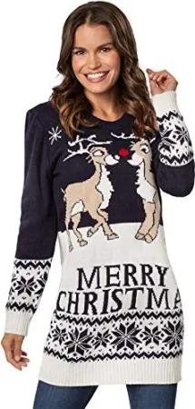 900831 Damen Weihnachtspullover Merry Christmas, Strickpullover mit süßen Rentieren - Diverse Größen - (L | Nr. 303362)