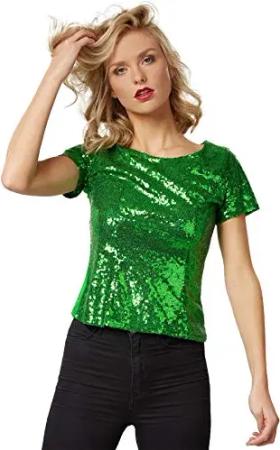 Pailletten Top Damen, Glitzer Oberteile Damen, Pailletten Oberteil Damen, Disco Kostüm Damen, sexy Faschingskostüme, Party Oberteil Damen, Party Top, Galaxy Kostüm Damen - grün, M