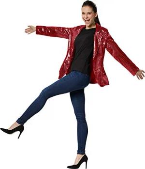 Blazer Damen, Kostüm Damen Pailletten Oberteil Damen, Glitzer Oberteile Damen, Jackett, Faschingskostüm, Disco Kostüm Damen, Rave Outfit Damen, 80er Jahre Outfit, dunkelrot, L