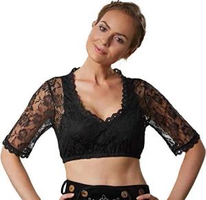 Dirndl Bluse, Trachtenbluse, Dirndlbluse schwarz Spitze, Halbarm Dirndlbluse V Ausschnitt, Trachten Oberteil Damen, Trachtenbluse Spitze, Schwarze Bluse Damen, Trachten Mode - M