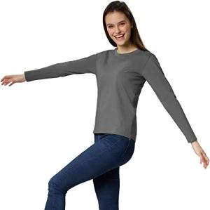 Langarmshirt Damen, Damen Pullover, Longsleeve Damen, Basic Langarmshirt Damen, Oberteile Damen, Mode für Freizeit, als Business Outfit Damen oder Sport Oberteile Damen - (Grau | XXL)