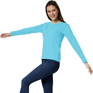 Langarmshirt Damen, Damen Pullover, Longsleeve Damen, Basic Langarmshirt Damen, Oberteile Damen, Mode für Freizeit, als Business Outfit Damen oder Sport Oberteile Damen - (Hellblau | L)