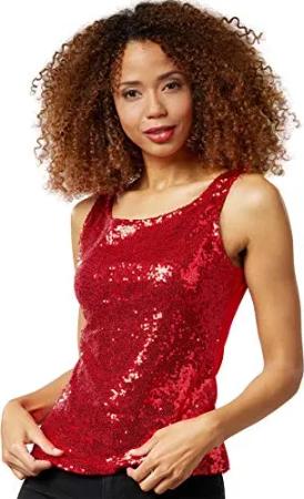 Pailletten Top Damen, Glitzer Oberteile Damen, Pailletten Oberteil Damen, Disco Kostüm Damen, sexy Faschingskostüme, Party Oberteil Damen, Party Top, Galaxy Kostüm Damen - rot, S