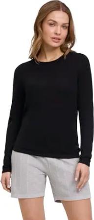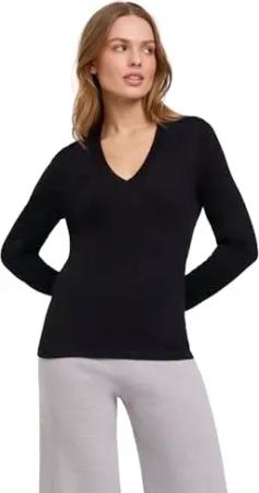 Damen Pullover Basic Longsleeve W L/s Sh Baumwolle weich langarm bequem sehr leicht 1 Stück, Schwarz Black 3000, M