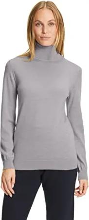 Damen Pullover Basic Roll Neck New Merino W Pu Wolle elegant klassisch für Business und Freizeit mit Rollkragen 1 Stück, Grau Light Grey 3400, L