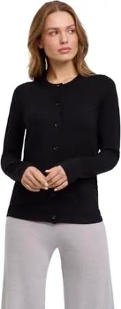 Damen Strickjacke Basic New Merino W Pu Wolle weich elegant klassisch für Business und Freizeit 1 Stück, Schwarz Black 3000, XXL