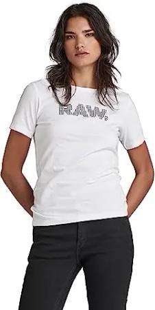 RAW Damen Slim V T Wmn Ss Tops, Blanco, Small