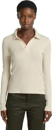 Damen Ribbed Slim Poloshirt, Weiß (Chalk D24513-D527-127), L