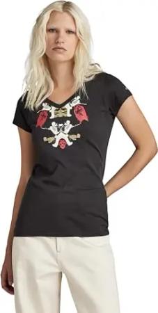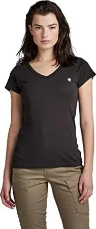 RAW Damen Eyben Slim V-Neck Top 2.0, Schwarz (dk Black D24533-4107-6484), S