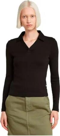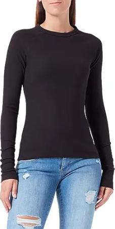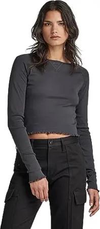 RAW Damen Slim Rib r t ls wmn, Schwarz (dk Black D23343-D493-6484), XXS