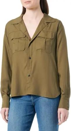 RAW Damen Fitted Officer Shirt Long Sleeve, Grün (Dark Olive D23816-D297-C744), L