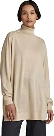 RAW Damen Loose Knitted Turtleneck Pullover, Beige (Brown Rice D22502-B692-D309), XS