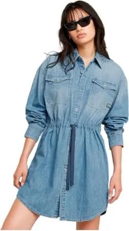 RAW Women's Shirts Relaxed Utility Shirt ss wmn, Blau (Sun Faded Thames D24881-D539-G341), M