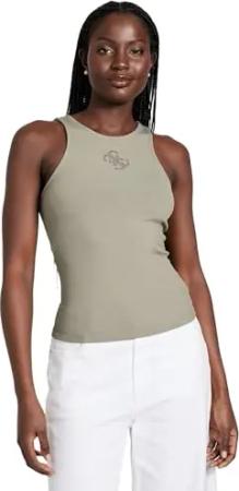 Damen Eco Sleeveless Triangle Bling Rib Tank, Reines Weiß