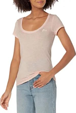 Women's Essential Short Sleeve Script Logo Scoop Neck Tee, Peach Creme, Small