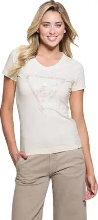 T-shirt donna Guess triangle tee cream white ES25GU08 W5RI21J1314 G012 XS