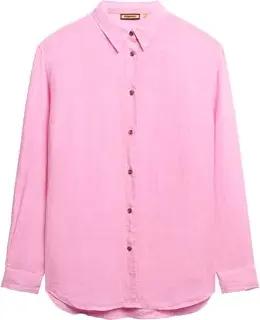 Superdry Women's Lässiges Hemd aus Leinen im Boyfriend-stil Pink - Größe: 42