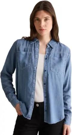 Damen Leinen Bluse B345360 (DE/NL/SE/PL, Alphanumerisch, L, Regular, Regular, Chambray für immer blau)