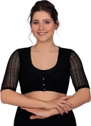 Sexy Dirndlbluse mit Schnürung und Verstellbarer Ausschnitttiefe in schwarz 36