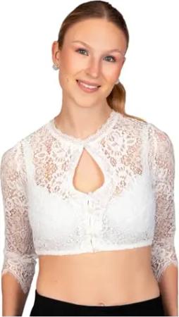 hochwertige Dirndlbluse Lara mit Tropfenausschnitt aus Spitze Gr. 32-50 (DE/NL/SE/PL, Numerisch, 32, Regular, Regular, weiß)