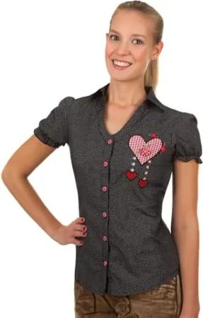 Trachten Bluse gepunktet mit Herz Applikation und Röschen (32)