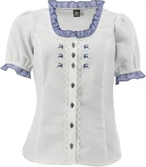 OS Trachten Damen Bluse Kurzarm Trachtenbluse mit Rundhalsausschnitt Fluspi, Größe:42, Farbe:weiß-Mittelblau