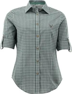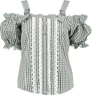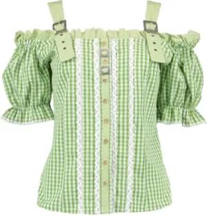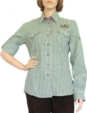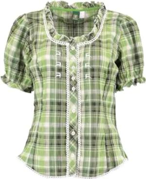Trachtenbluse Damen Trachten Lederhosen-Bluse Trachtenmode grün kariert, Größe:42