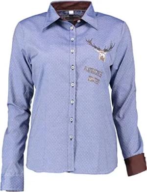 OS Trachten Damen Bluse Langarm Trachtenbluse mit Liegekragen Fudos, Größe:38, Farbe:Jeans