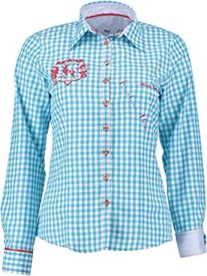 OS Trachten Damen Bluse Langarm Trachtenbluse mit Liegekragen Sonitu, Größe:38, Farbe:türkis