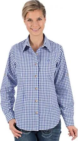 OS Trachten Damen Bluse Langarm Trachtenbluse mit Liegekragen Ututu, Größe:42, Farbe:Mittelblau