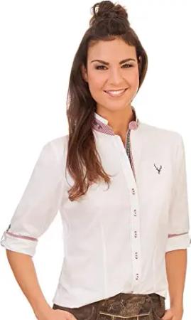 OS Trachten Damen Bluse Langarm Trachtenbluse mit Liegekragen Irami, Größe:36, Farbe:weiß
