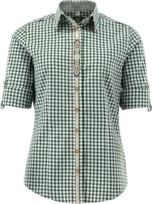 OS Trachten Kurzarm Trachtenbluse mit Liegekragen Qilari, Größe:34, Farbe:trachtengrün