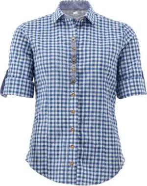 OS Trachten Langarm Trachtenbluse mit Liegekragen Pivori, Größe:36, Farbe:dunkelblau