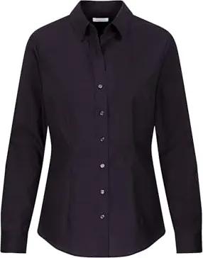Damen Women Slim Longsleeve Cotton Bluse, Schwarz(080613), 42 EU