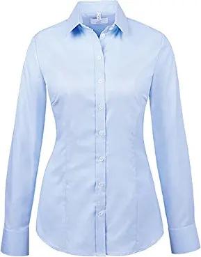 Corporate Wear Modern with 37.5 Damen Bluse Langarm Slim Fit Hellblau Modell 6519 Größe 34
