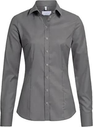 Größe 38 Corporate Wear Basic Damen Bluse Lamgarm Slim Fit Kent Kragen Grau Modell 6510