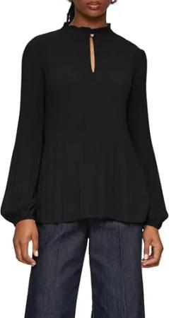 Plissierte Bluse aus Crêpe mit Stehkragen
