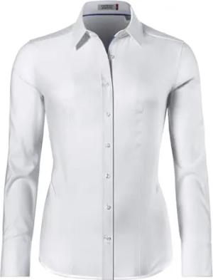 Damen Bluse leicht tailliert 100% Baumwolle bügelleicht Langarm Hemdbluse elegant festlich Kent-Kragen auch für Business und unter Pullover weiß 42