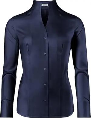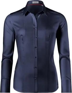 Damen Bluse leicht tailliert 100% Baumwolle bügelleicht Langarm Hemdbluse elegant festlich Kent-Kragen auch für Business und unter Pullover dunkelblau 40