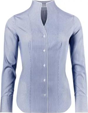 Bluse, modern-fit/leicht tailliert, Kelchkragen, gestreift - bügelleicht blau/weiß 38