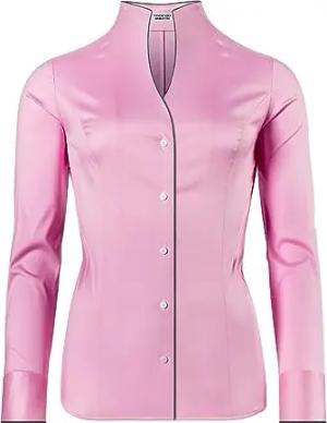 Damen Bluse mit Kelchkragen leicht tailliert 100% Baumwolle bügelleicht Langarm Hemdbluse mit Stehkragen elegant festlich auch für Business pink 36